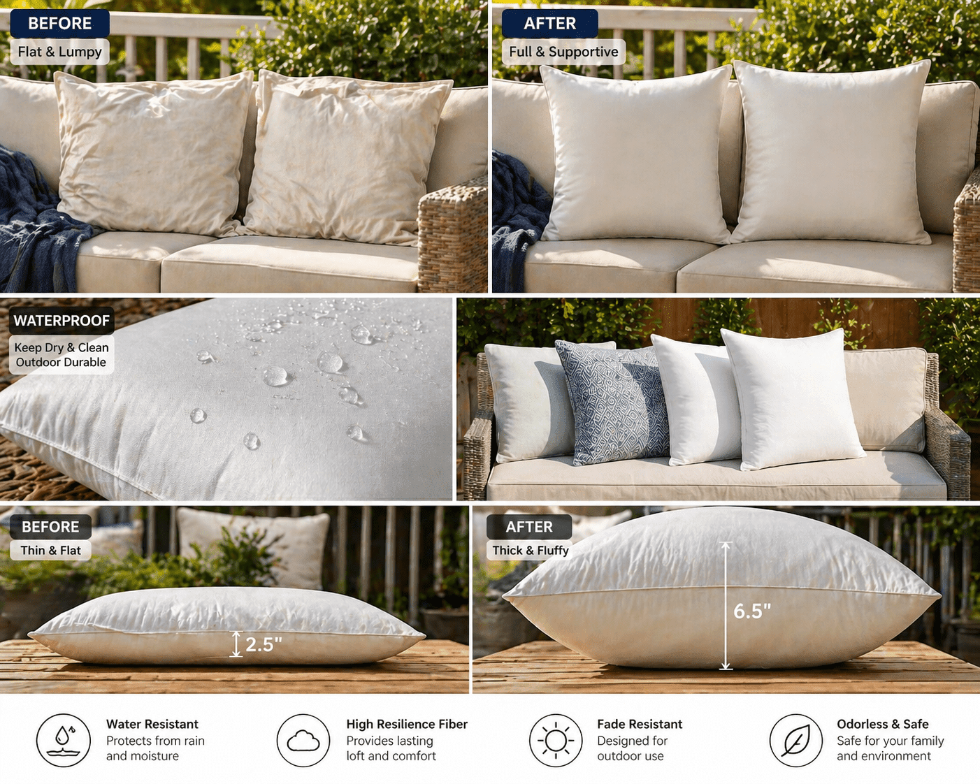Make your indoor or outdoor space more comfortable and stylish without replacing furniture. These waterproof pillow inserts are an easy and affordable upgrade.